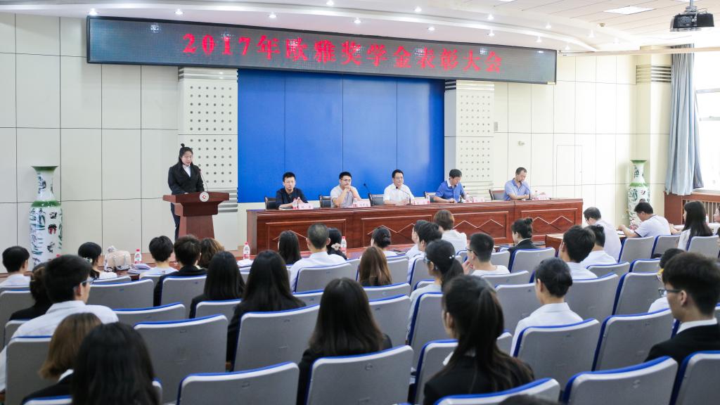 6月22日上午,beat365官网在新校区木铎厅举行beat365在线唯一官网2017年欧雅奖学金表彰大会。校党委副书记栾宏、上海欧雅壁纸集团培训总监项开春、各二级学院学生工作负责人出席会议。学工部部长、学生处处长冯森主持表彰大会。