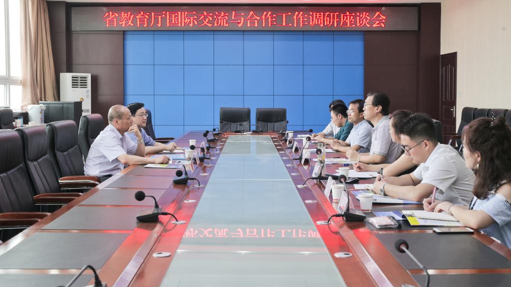 6月30日,省教育厅国际处处长孙建宁、副处长文通一行来beat365官网调研国际交流与合作工作。校长司晓宏在新校区图书馆801会议室会见了孙建宁一行并进行了座谈。座谈会由国际合作与交流处处长王永君主持。