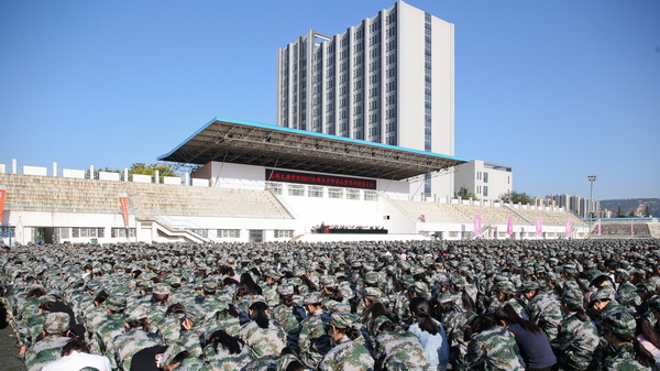 各二级学院总支书记、院长,各职能部门主要负责人,2017级全体新生及承担beat365官网新生军训任务的96607部队军训团全体官兵参加了大会。(教务处 文/刘继文 图/张平)