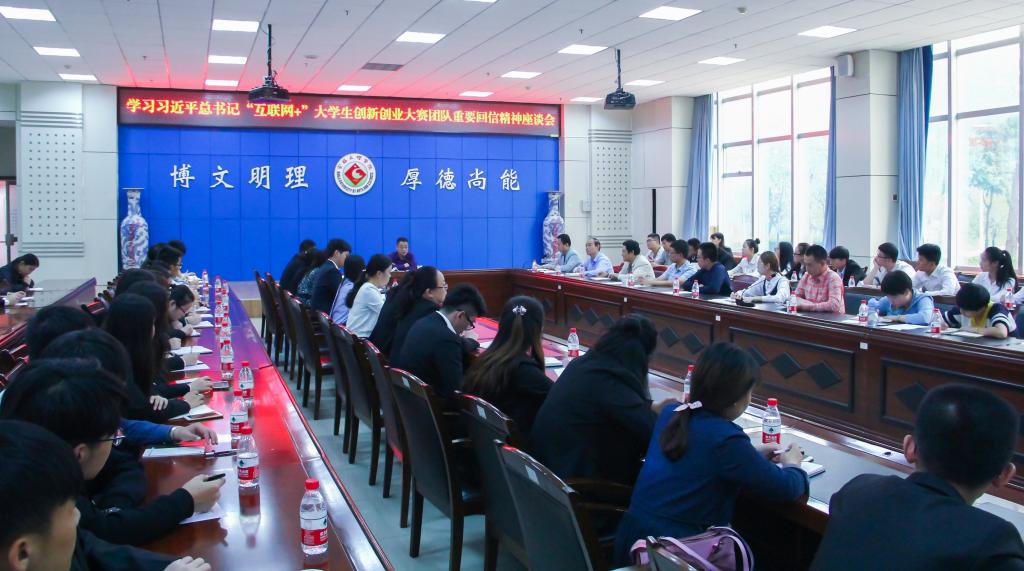 9月15日下午,学工系统在新校区甘棠厅召开“学习习近平总书记给‘互联网+’大学生创新创业大赛团队重要回信精神座谈会”。校党委副书记栾宏出席座谈会并讲话。