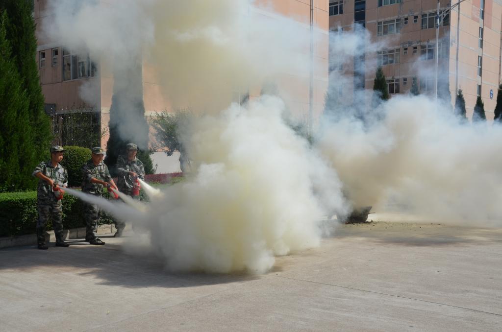 在消防灭火演练环节,消防官兵讲授了如何正确报警和自救逃生、如何使用干粉灭火器、如何扑救初起火灾等基本消防安全知识,强调注意事项并进行了演示。之后,300名同学以多人一组的方式,使用干粉灭火器进行实操灭火。