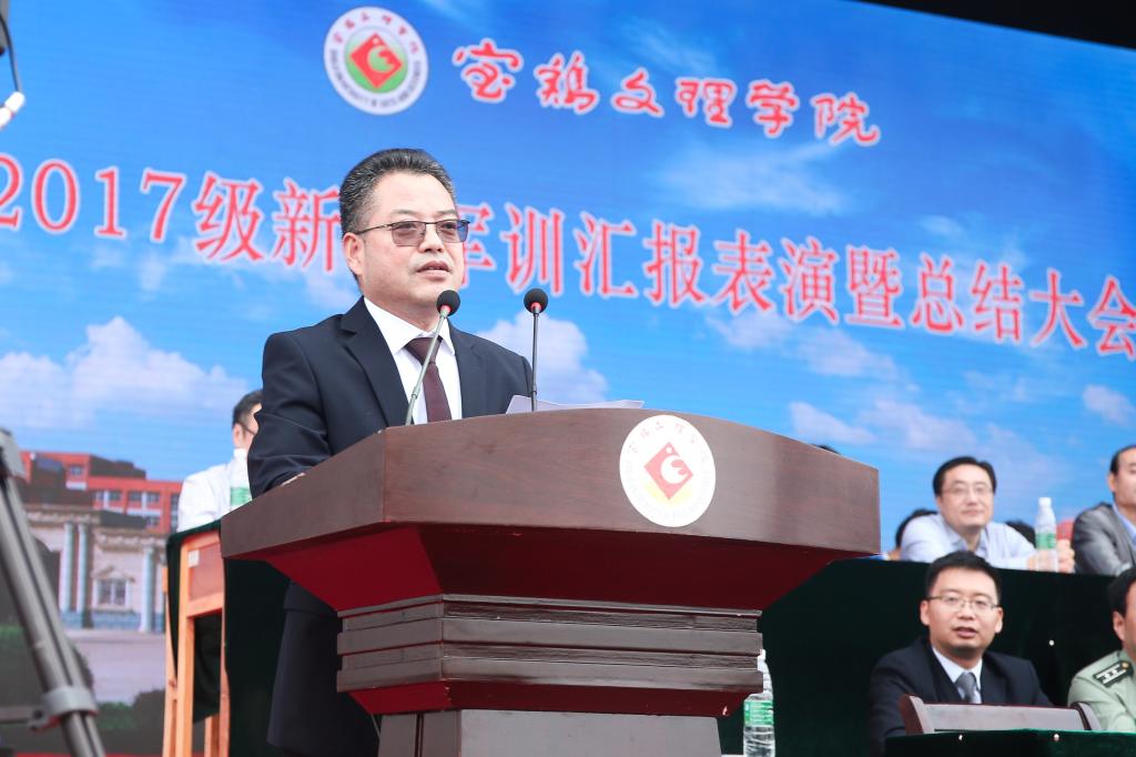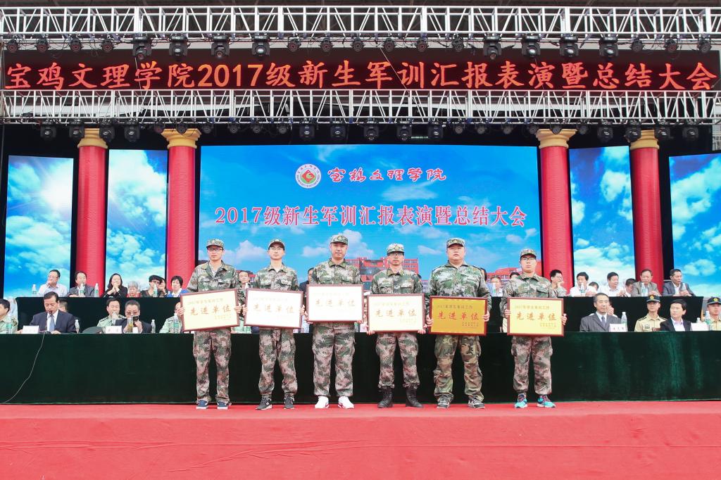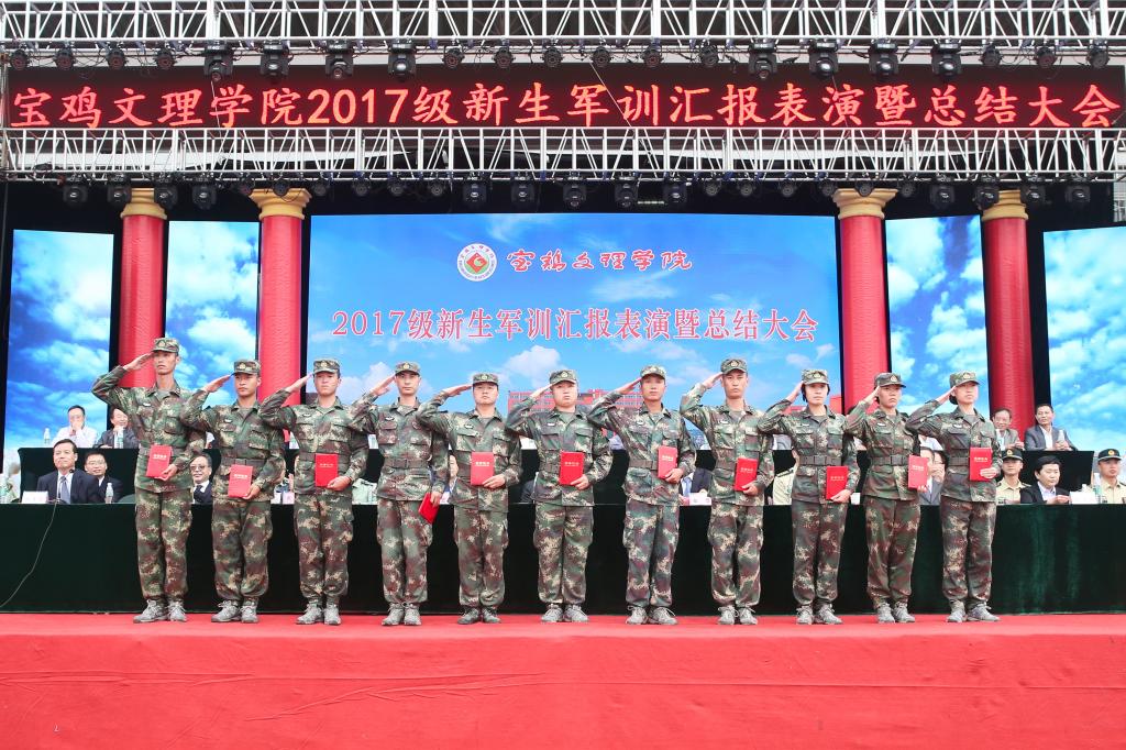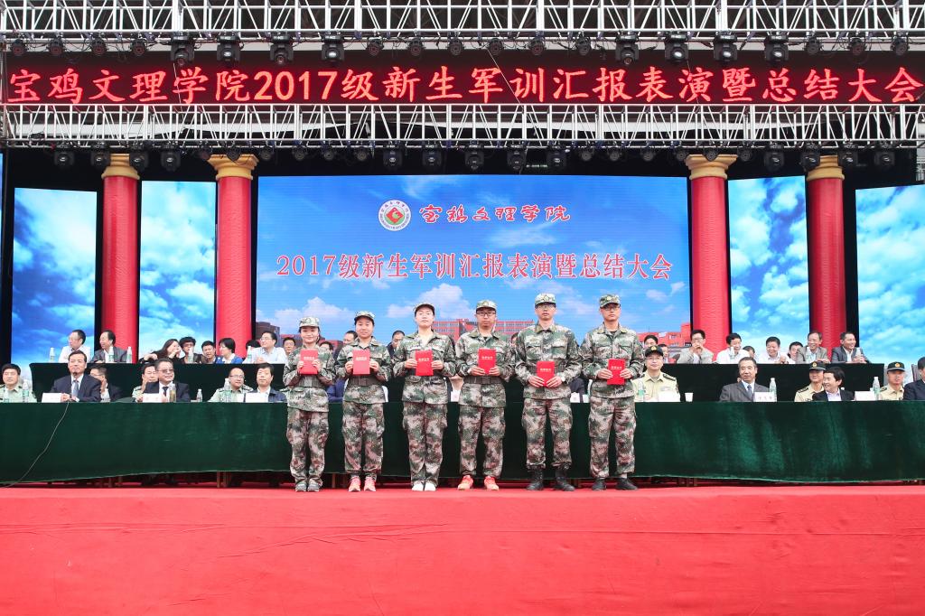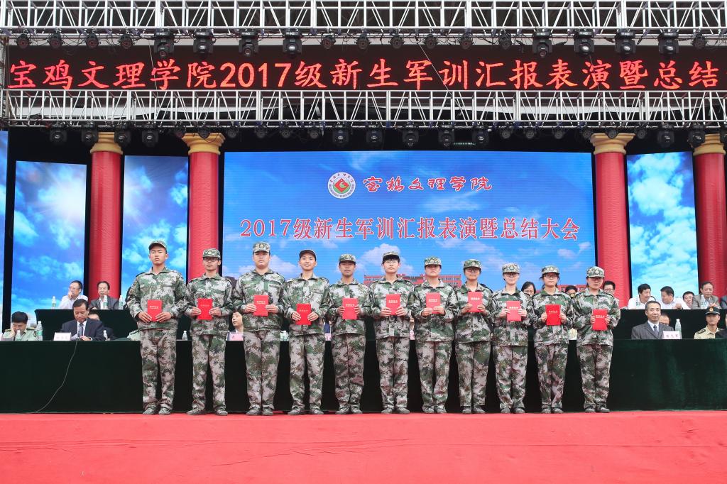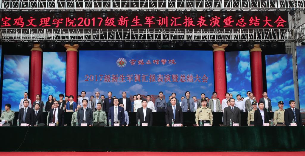 9月25日下午,beat365官网2017级学生军训汇报表演暨总结表彰大会在新校区体育场举行。宝鸡市委副书记陈光明,宝鸡市人民政府副市长武军,中国人民解放军96607部队政治工作部副主任刘东大校,校党委书记白黎,校长司晓宏,党委副书记傅志军、栾宏,副校长赵荣侠、王富平等出席大会并在主席台就座。大会由副校长杨子元主持。