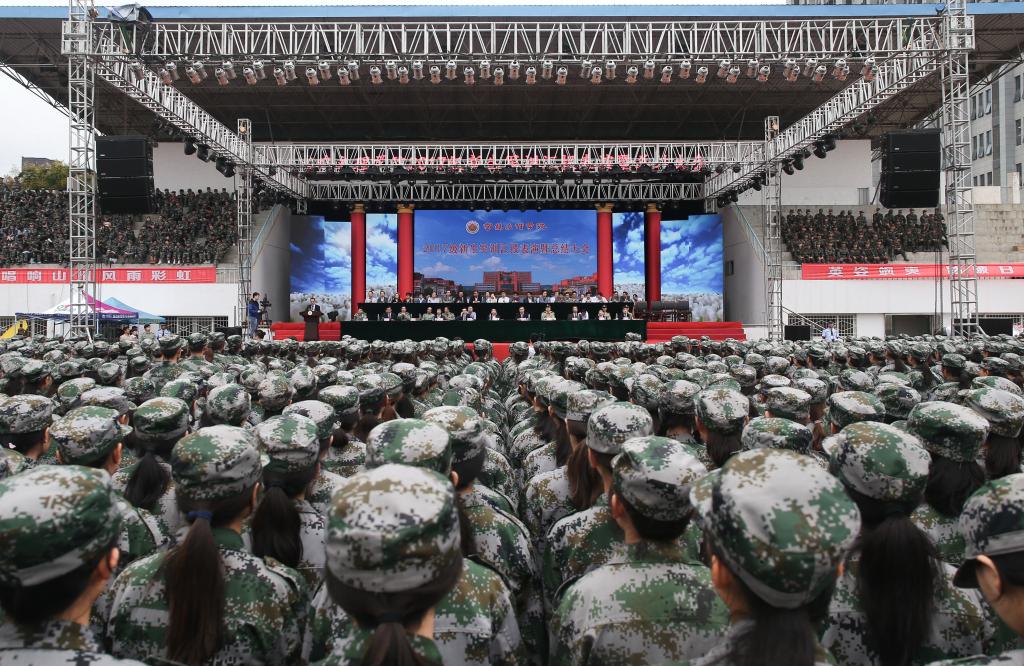 军训工作领导小组全体成员,各学院党政主要领导、各职能部门主要负责人及全体2017级本科新生参加了大会。(武装部 文/李娜 图/张平)