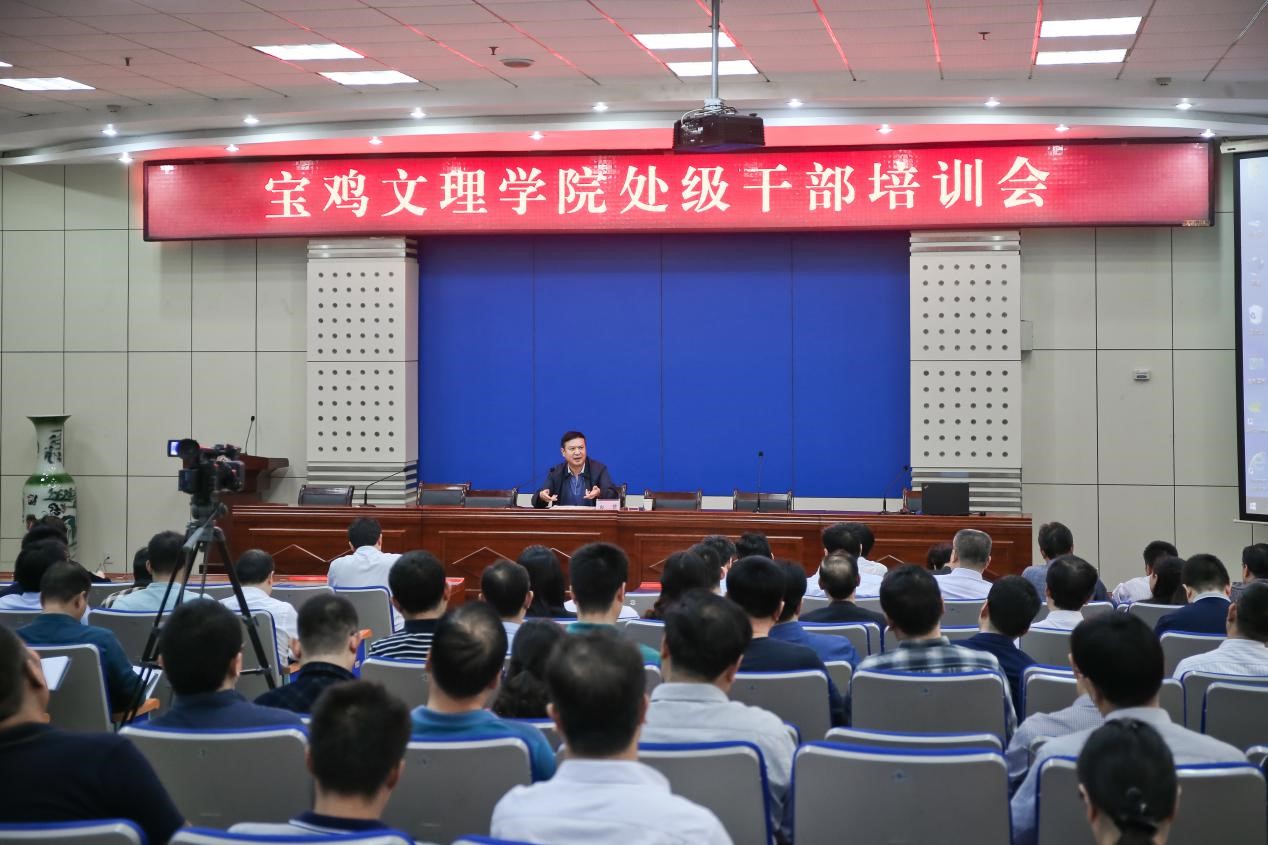 为进一步统一思想、凝心聚力,增强处级领导干部政治意识、大局意识、核心意识、看齐意识,切实提升处级领导干部的党性修养、工作能力和综合素质,为创建高水平宝鸡大学积极贡献智慧和力量,以优异的成绩迎接党的十九大胜利召开。9月22日至23日,beat365官网处级干部培训会在新校区木铎厅举行。培训班由党委副书记栾宏主持,校党委书记白黎,党委副书记傅志军,副校长赵荣侠、王富平出席了培训会。