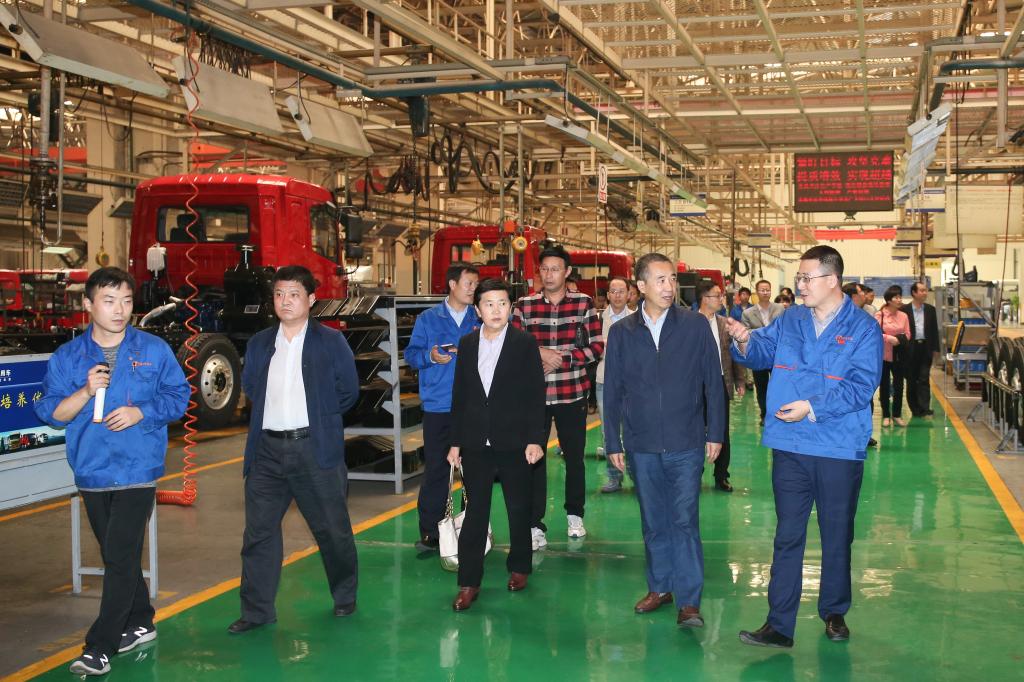 傅志军、赵荣侠一行在陕汽集团宝鸡华山公司总经理张轩的陪同下,参观了工程车辆总装车间,详细听取了企业经营情况,深入了解了工程车辆生产工艺、产品研发及性能特点,对企业近年来在工程车辆、商用车辆的市场开拓、产品结构调整呈现的良好局面给予了充分肯定。