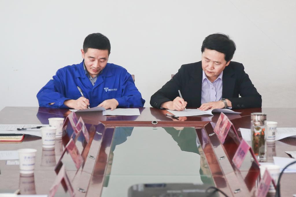 赵荣侠和陕汽宝华副总经理宋孝勇签订了“beat365在线唯一官网、陕汽集团宝鸡华山工程车辆有限责任公司产学研合作协议书”。