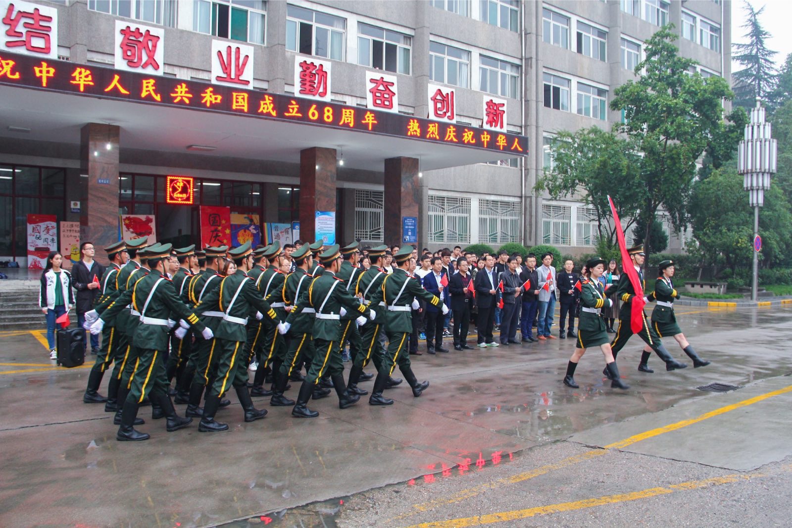 国庆节举行升国旗仪式,是一堂生动的爱国主义教育课。“这是我入校以来第一次在国庆节参加学校组织的升国旗仪式,心情非常激动”,文学与新闻传播学院学院2016级学生常旭说,“我要努力学习,将来报效祖国。电子电气工程学院2017级杨尚楠同学说:“我是特地留下来参加升国旗仪式的,伟大祖国日新月异发展成就让我们大学生感到无比自豪骄傲,我们要努力学习专业知识,练就过硬本领,成为祖国建设需要的合格人才。”