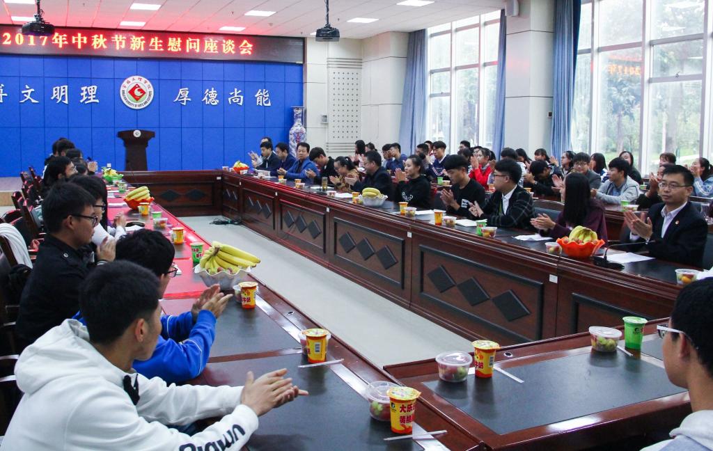 10月4日下午,学校在新校区甘棠厅召开了2017年中秋节新生慰问座谈会。校党委副书记栾宏出席慰问活动并讲话,座谈会由学工部(处)长冯森主持。