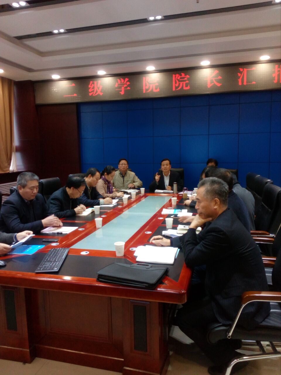 会上,各二级学院院长按照审核评估汇报要求,以PPT的形式从学院概况、专业和师资、教学资源、创新创业教育、考研就业、科研成果以及存在问题和解决措施等方面进行了汇报。