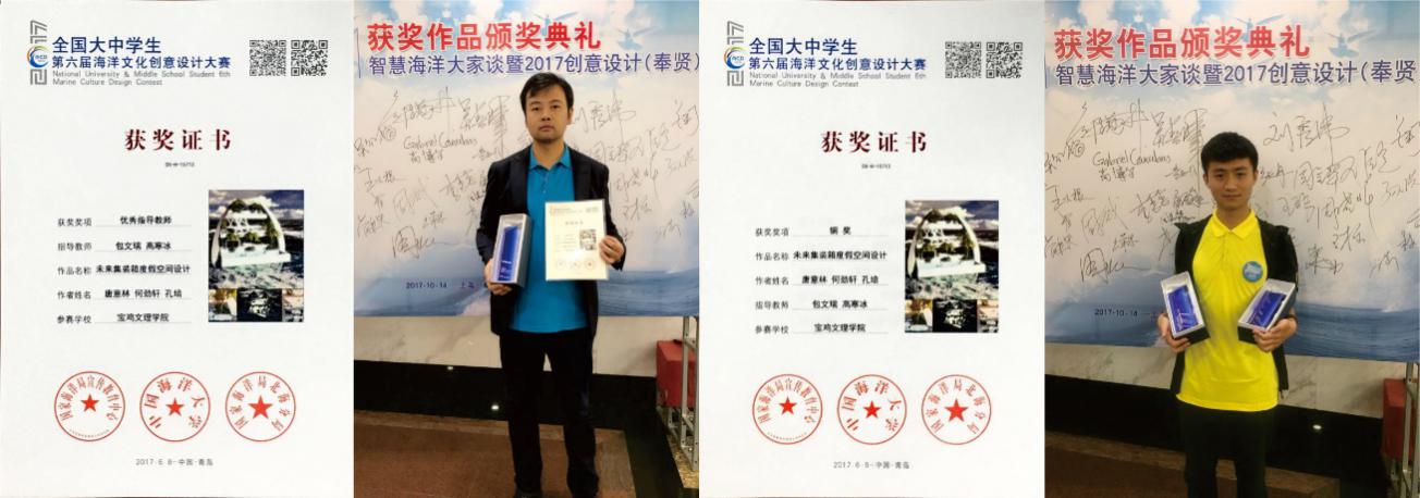10月14日—15日,全国大中学生第六届海洋文化创意设计大赛获奖作品颁奖典礼及作品展在上海奉贤区会议中心举行。闭幕式展览获得刘延东副总理的高度评价。beat365官网美术学院教师包文瑞、高寒冰指导的3件学生设计作品获奖。