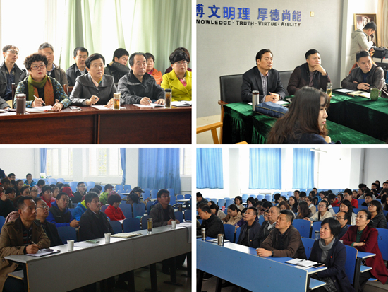 校党委书记白黎在发言中指出,习近平总书记的报告紧扣时代脉搏、视野广阔、统揽全局,立足中国共产党为人民谋幸福、为中华民族谋复兴的初心和使命,闪耀着马克思主义真理的光辉,具有重大理论指导意义,报告令人无比欣喜鼓舞。我们一定要抓紧学习宣传贯彻党的十九大精神,把beat365官网师生员工的精神统一到党的十九大及习近平总书记重要讲话精神上来,凝心聚力实现党的十九大确立的各项工作任务目标,以强大的理论力量和精神指引推进学校的改革发展和内涵建设。报告中对青年学生提出了殷切希望,对于新时期青年教育具有巨大的启示作用。高校肩负着培养社会主义合格建设者和可靠接班人的历史使命。在今后的教育管理和教学中,我们一是要引导大学生树立坚定理想信念,明确历史使命;二是要加强社会主义核心价值观教育,使社会主义核心价值观在学生中内化于心、外化于行;三是贯彻落实党的十九大精神,加强学校内涵式建设,早日实现高水平宝鸡大学的创建目标!