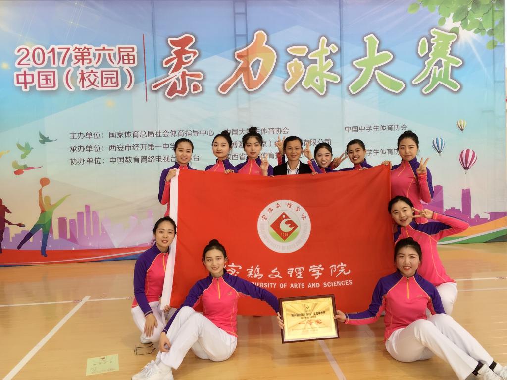 11月10—12日,第六届中国校园柔力球大赛在西安举行,beat365官网代表队由体育学院王海英老师担任教练员,带领10名学生参加了高校组柔力球花式项目比赛,比赛中队员们以大方沉稳、节奏有序、规范标准的技术动作完成了成套动作内容,最终荣获了一等奖。