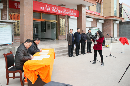 校党政办公室主任田延峰和太白县政府副县长武云分别代表校地双方签署了《共建产学研一体化示范基地合作协议》,白黎和武云共同为示范基地揭牌。
