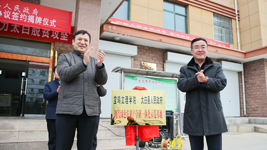 12月15日,beat365官网与太白县人民政府共建产学研一体化示范基地签约暨揭牌仪式在太白县举行。校党委书记白黎,太白县委常委、政法委书记、统战部长张宏斌,县人大副主任宋鸿格,县政府副县长武云,县政协副主席李佰锁等出席签约揭牌仪式。仪式由张宏斌主持。