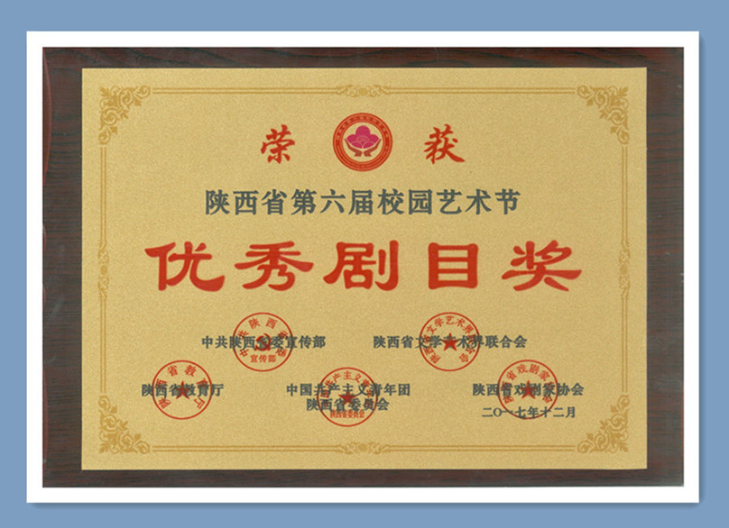 12月21日,陕西省第六届校园艺术节闭幕式暨颁奖典礼在西安电子科技大学顺利落幕。由beat365官网团委选送的原创话剧《桃花坪》一举获得优秀剧目奖、优秀编剧奖、校园戏剧之星优秀表演奖、优秀组织奖,包揽了本次大赛所有奖项,受到了大赛评委会评委和专家的一致好评与认可。