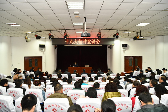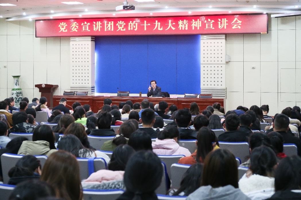 报告会上,校领导从党的十九的主题和主要成果、习近平新时代中国特色社会主义思想、过去五年的历史性成就和历史性变革、中国特色社会主义新时代、我国社会主要矛盾的变化、两个一百年奋斗目标的战略部署、我国经济社会发展重大战略部署、坚定不移推进全面从严治党等方面对党的十九大精神进行了深入解读。