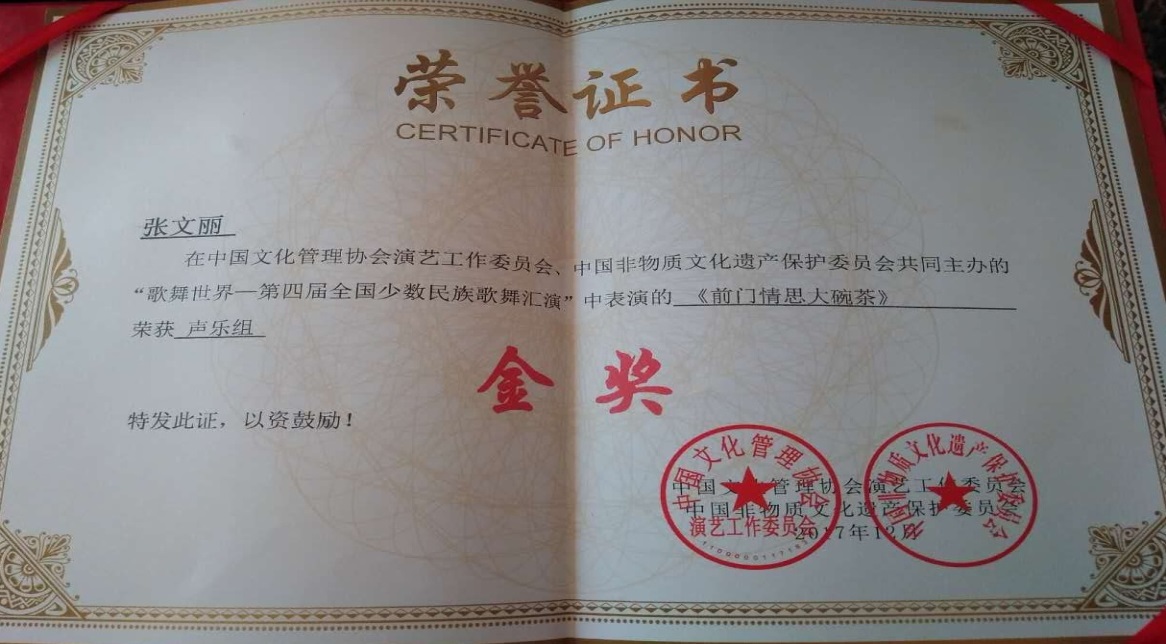 近日,beat365官网音乐学院教师张文丽在“歌舞世界——第四届全国少数民族歌舞汇演”总决赛中以一首《前门情思大碗茶》荣获声乐组金奖,并受邀参加了《孝道行天下》精品节目展演录制。