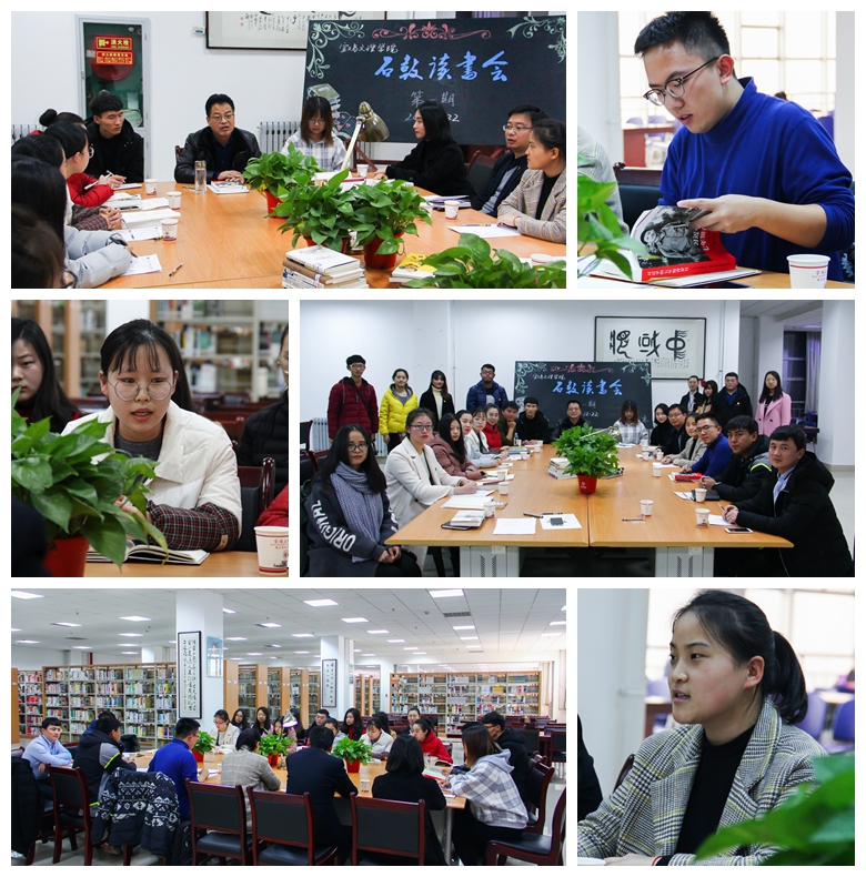 石鼓读书会每月举行一期,采取师生公开自愿报名参加,开放式探讨交流朗读形式举行。作为校团委服务学生成长、促进学风建设推出的一项品牌性活动,石鼓读书会旨在鼓励学生多读书、乐读书,会读书、读好书,通过分享图书信息和读书心得,在广大师生中倡导“在读书中学习,在学习中工作”的良好学习风气,以及崇尚读书、热爱读书的校园风尚,切实推进“书香文理”和学风建设,受到了广大青年学生的关注与欢迎。(校团委 文、图/张磊)