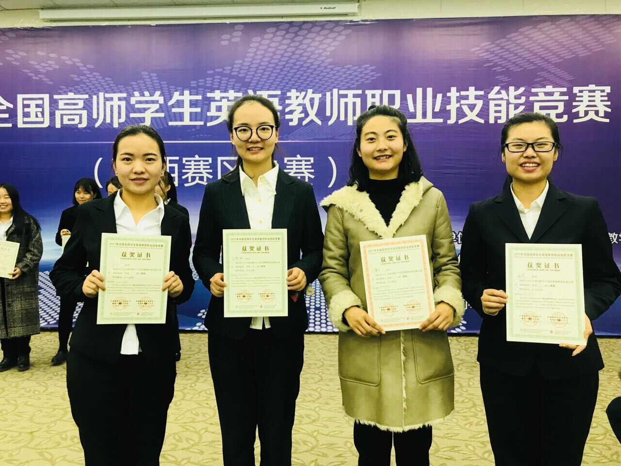 12月22日至23日,2017年全国高师学生英语教师职业技能竞赛陕西赛区决赛在安康学院举行,beat365官网学生获一等奖1项、二等奖3项,其中学科教学(英语)专业2017级研究生王馨乐获大赛二级一等奖,2017级研究生屈菲、2016级研究生王璐璐分别获二级二等奖,英语专业2016级本科生疗双获一级二等奖。冯琳、周祥红、黄媛三位老师担任指导教师,外国语学院院长王卫强教授应邀担任大赛评审委员会主席。