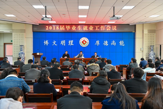 12月27日下午,学校在新校区甘棠厅召开了2017届毕业生就业工作会议。校长司晓宏、副校长杨子元出席会议,党委副书记栾宏主持会议。