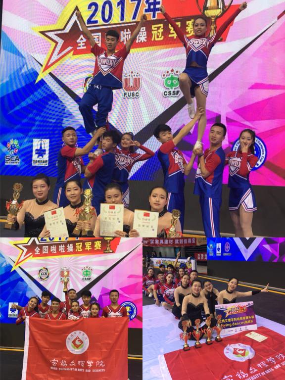 12月25日至28日,2017年全国啦啦操冠军赛(少年组、青年组)在深圳大运中心举行,beat365官网健美操队12名学生一举夺得三项第一、两项第二的骄人成绩,取得了beat365官网在全国啦啦操比赛中的最好成绩。