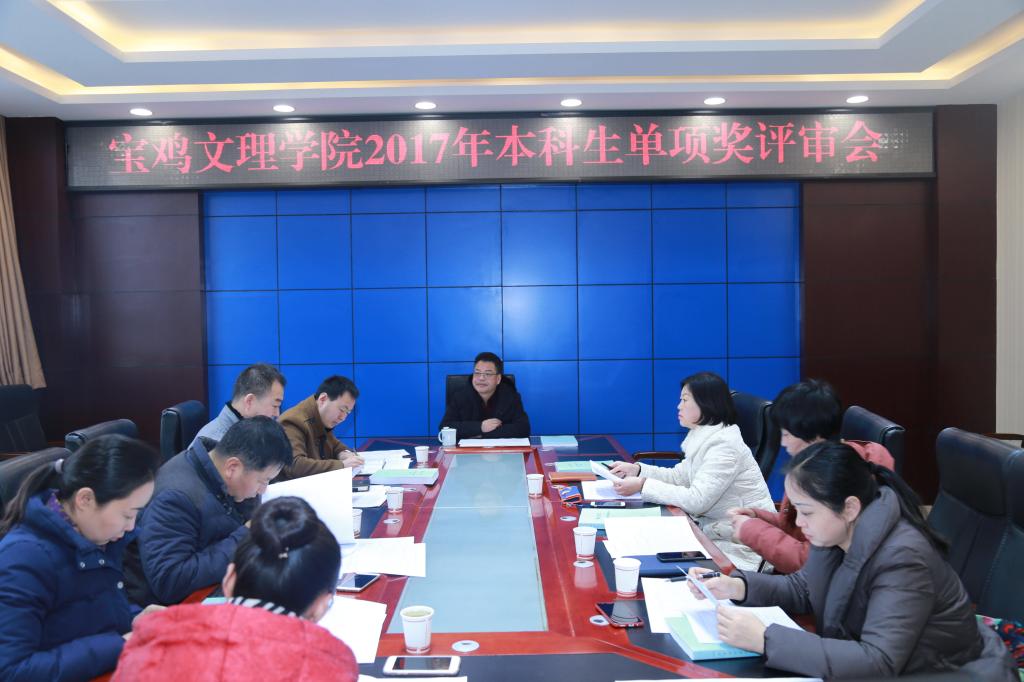 1月12日上午,学校在图书馆806会议室召开2017年本科生单项奖评审会,校党委副书记栾宏出席会议并讲话,会议由学工部(处)部(处)长冯森主持。