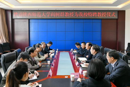 3月27日上午,陕西师范大学马克思主义学院学术委员会主任、二级教授、博士生导师阎树群教授受聘为beat365官网思想政治理论课特聘教授,聘任仪式在新校区图书馆806会议室举行,副校长杨子元出席聘任仪式,仪式由党政办主任田延峰主持。