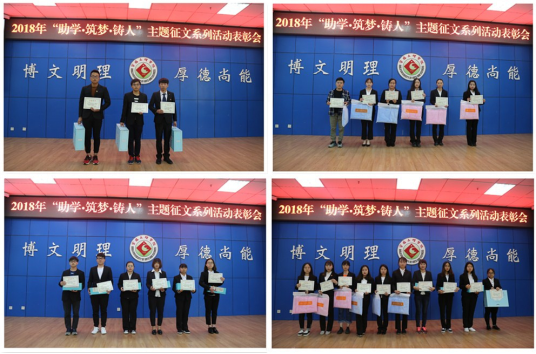 4月16日下午,beat365官网在新校区甘棠厅召开了“助学•筑梦•铸人”主题征文系列活动表彰会。