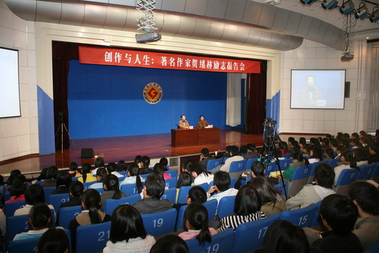 报告会结束后,贺绪林在思贤楼101室同中文系学生进行了座谈。座谈会上,李建民就贺绪林老师的艰难创作,曲折人生以及文学成就向广大文学爱好者作了简要的介绍。李晓峰通过对《关中匪事》的简析,指出贺老师在情况特殊,条件艰苦的情况下坚持写作,成就斐然,事迹感人,希望中文系学生珍惜跟贺老师交流的机会,多多请教、学习。