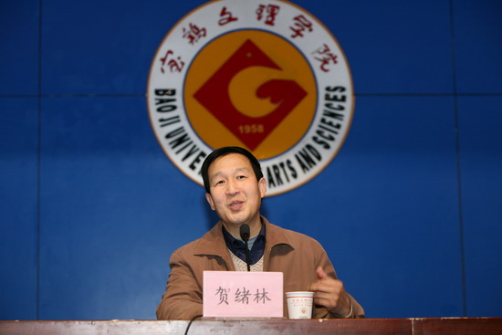 11月28日下午,中国作家协会会员、陕西省作协理事、杨凌示范区作协主席贺绪林先生在我院新校区音乐厅作了题为“创作与人生”的励志报告。党委宣传部部长彭志启、中文系党总支书记李晓峰、院团委书记冯森、全体学生辅导员以及400余名学生参加了报告会。报告会由学工部部长、学生处处长李建民主持。