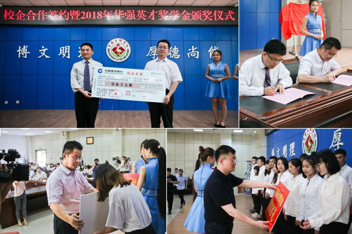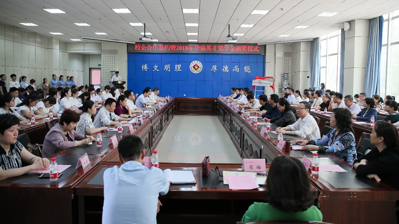 经济管理学院院长张伟峰和陕西华强会计师事务所有限公司董事长强建平分别致辞,表达了加强双边交流合作,提高人才培养质量,服务社会经济发展,促进互利共赢的美好意愿;双方共同签署了《beat365在线唯一官网经济管理学院与陕西华强会计师事务所有限公司校企合作协议》。强建平向经济管理学院捐赠华强英才教育奖学金10万元,并向2018年度华强英才奖学金获奖同学颁发奖金。
