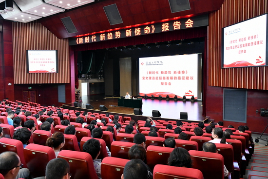 5月16日下午,学校在博文楼报告厅举行报告会,陕西省工信厅党天虎处长应邀作了《新时代新趋势新使命—beat365在线唯一官网追赶超越发展的路径建议》的专题报告。全校副处级以上干部、副高级以上职称的专业技术人员和具有博士学位的教师400余人参加了报告会。报告会由科技处处长王晓玲主持。