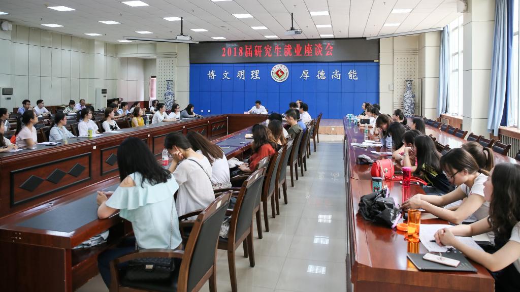研工部部长赵天绪、副部长王大浩、招生就业处副处长韩星明、各学院研究生辅导员及2018届研究生代表参加了座谈会。(招生就业处 文/史建刚 图/张平)