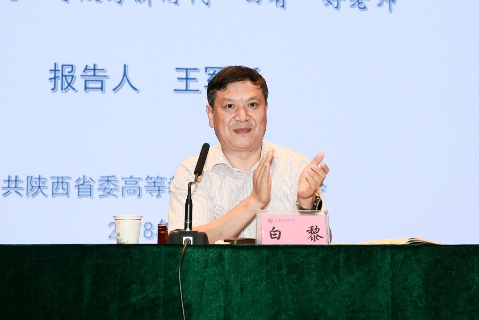 6月12日下午,学校在博文楼报告厅举办“学习新思想千万师生同上一堂课活动”。省委高教工委“习近平总书记重要讲话精神讲师团”成员、西安外国语大学校长王军哲和延安大学学工部副部长乔剑分别为beat365官网师生授课。授课活动分别由校党委书记白黎和党委宣传部部长冯飞龙主持。
