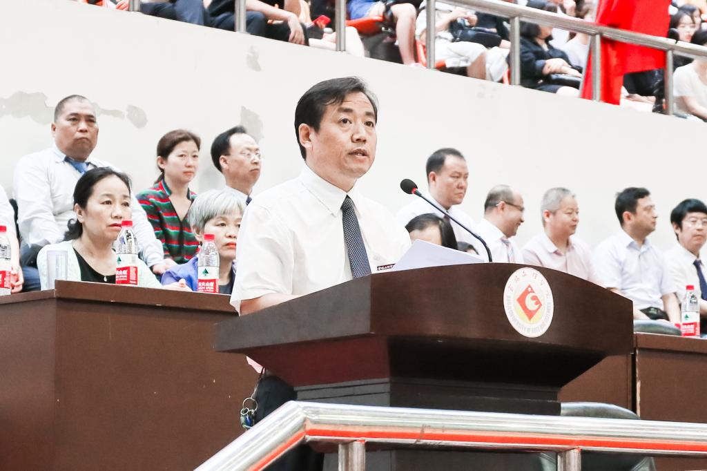 司晓宏指出,今天的毕业典礼不仅标志着学校对2018届毕业生综合素质和学业水平的认可,也意味着他们将真正作为一个成年人履职担当的开始。他就“责任”这个话题向2018届毕业生强调了三方面:他提醒同学们,面临这个责任意识有所淡化和缺失的时代,要能理解责任的涵义,并成为这个时代真正拥有历史责任感和担当感的一代公民。他告诉同学们,责任感的确立和担当意识的形成是一个人人格成熟的主要标志,当同学们跨出校门的时刻,也正是以一个完全成熟的公民承担责任、回馈社会的时刻,应该为国家、为社会、为父母、为家庭、为爱人以及为自己即将获得的社会称谓负责。他警醒同学们,你们正责无旁贷地肩负着实现中华民族伟大复兴的历史使命,只有具有强烈责任感、使命感和担当感的人才能真正成为社会主义现代化的建设者和接班人。最后,司晓宏向全体毕业生送上衷心祝福,希望同学们勇敢承担责任,谱写无悔青春,愿他们历尽千帆,归来仍是如初少年,老师们会永远关注他们远去的航船,母校永远是他们心灵的港湾。