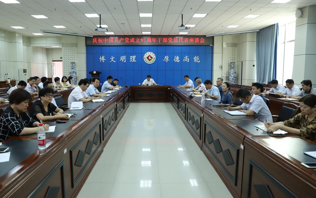 6月26日下午,在中国共产党成立97周年来临之际,学校在新校区甘棠厅召开庆祝建党97周年干部党员座谈会。会议由校党委书记白黎主持。