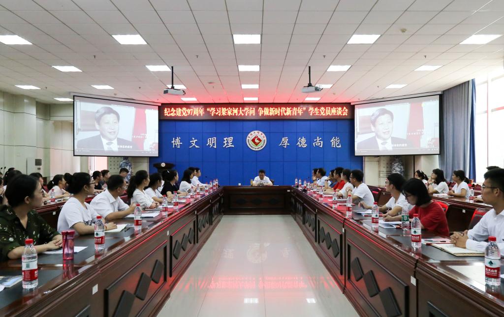 6月26日下午,学校在新校区甘棠厅召开庆祝建党97周年“学习梁家河大学问 争做新时代新青年”学生党员座谈会。座谈会由校党委副书记栾宏主持。