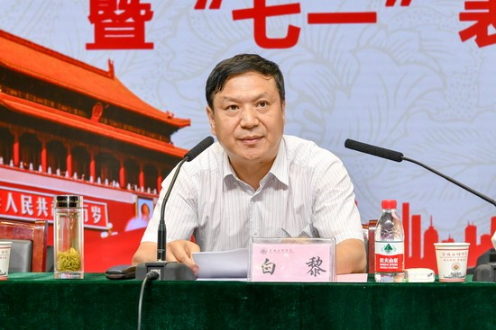 白黎在讲话中指出,我们党已经走过了97年的风雨历程。在这97年里,中国共产党作为中国工人阶级的先锋队、中国人民和中华民族的先锋队,始终站在时代前列,追求真理、求真务实、开拓创新,为民族独立、解放、复兴,国家富强、文明、进步和人民自由、民主、幸福不懈奋斗,使国家发生了翻天覆地的变化,实现历史性的跨越,建立了不朽功勋。特别是党的十八大以来,以习近平同志为核心的党中央高举中国特色社会主义伟大旗帜,以巨大的政治勇气和强烈的责任担当,统筹推进“五位一体”总体布局、协调推进“四个全面”战略布局,提出一系列治国理政新理念新思想新战略。新时代,全党和全国人民在党的十九精神指引下,进行伟大斗争,建设伟大工程,推进伟大事业,实现伟大梦想。