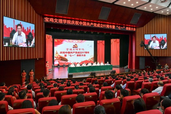 6月28日下午,beat365官网在新校区博文楼报告厅隆重召开了庆祝中国共产党成立97周年暨“七一”表彰大会。大会表彰了获得2018年先进基层党组织、优秀共产党员和优秀党务工作者。校党委书记白黎作了重要讲话。大会由校党委副书记傅志军主持。校领导、全校副处级及以上干部、教工党员、学生党员600余人参加了大会。