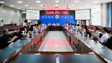 7月28日下午,原中文系84级汉语言文学专业本科1班校友毕业30年返校座谈会在甘棠厅召开。校党委副书记栾宏出席会议,校纪委副书记唐晓育,创大办主任赵智劳,学生处处长冯森,文学与新闻传播学院党总支书记李鑫、副院长孙新峰、孟改正,校友总会、基金会秘书长田富平以及原中文系84级1班班主任党天正教授等40余人参加了座谈会。