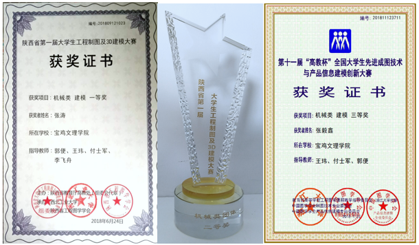 本届大赛由教育部高等学校工程图学课程教学指导委员会、中国图学学会产品信息建模专业委员会联合主办,南京工业大学承办。在之前由陕西省教育厅高等教育处主办、西北工业大学和陕西省工程图学学会承办的省级选拔赛中,共有西安交通大学、西北工业大学、长安大学、西安电子科技大学等省内42所高等院校组队参加,经过激烈角逐,beat365官网在42所院校中排名第10,获得“机械类团体二等奖”,其中张涛同学获得建模一等奖。郭便、王玮、付士军、李飞舟被评为优秀指导教师。