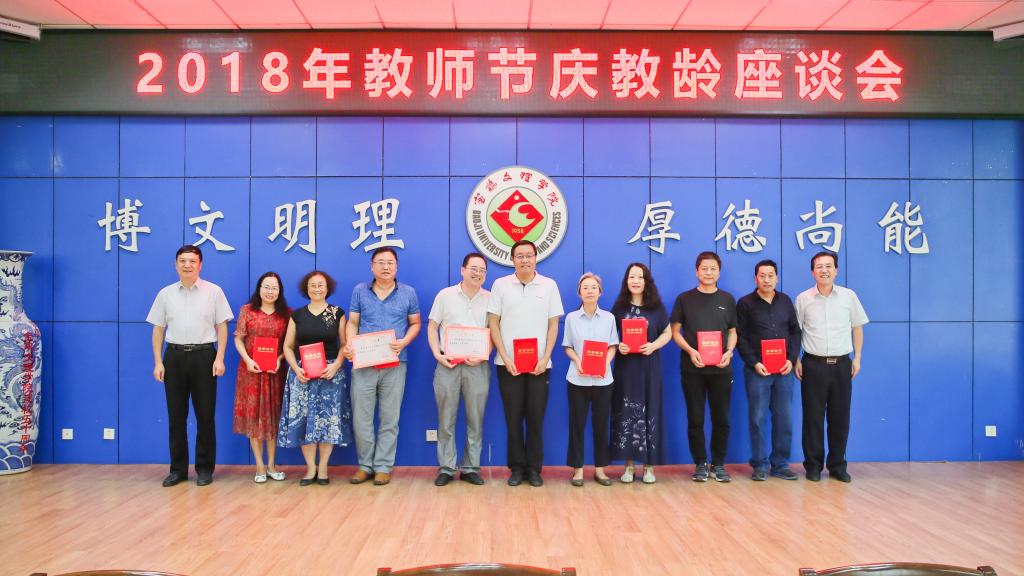 9月7日下午,学校在新校区甘棠厅召开2018年教师节庆教龄座谈会。校党委书记白黎、校长司晓宏出席会议并向年满35年、30年、25年教龄的教职工颁发了荣誉证书。会议由校党委副书记傅志军主持。