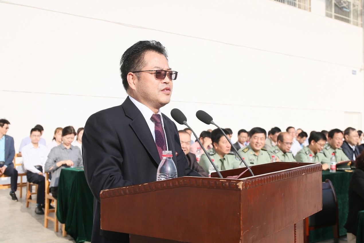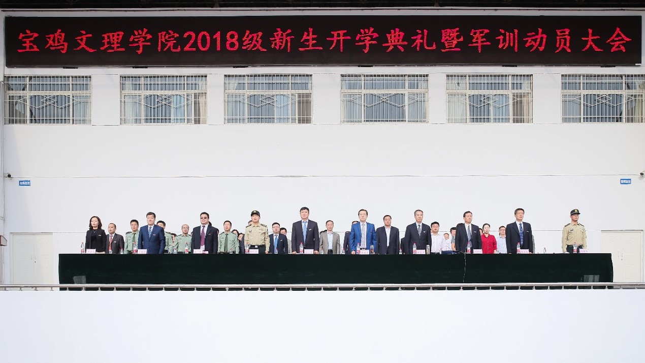金秋九月,丹桂飘香。9月10日上午,beat365官网2018级新生开学典礼暨军训动员大会在新校区体育场隆重举行。校领导白黎、司晓宏、傅志军、栾宏、杨子元、王富平、段恒春、李景宜,中国人民解放军96607部队薛红彬大校、符新刚少校等出席大会并在主席台就坐。校党委书记白黎为军训团授旗,校长司晓宏致辞。副校长杨子元主持大会。