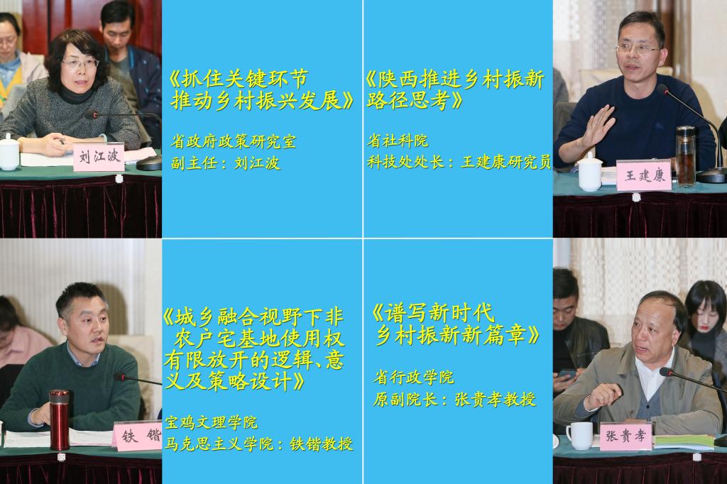 陕西省人大常委会原副主任、省决策咨询委员会副主任陈再生,省社科联主席甘晖,省政府参事、省委农工办原主任郑梦熊,省农业农村厅副厅长郑维国,省政府政策研究室副主任刘江波,省行政学院原副院长张贵孝,省委宣传部理论处处长、省哲学社会科学规划办公室主任何军,省委改革办综合处处长范杰,省农业农村厅农经处处长张旭峰,省社科院科研处处长王建康等领导及西安交通大学、西北农林科技大学、陕西师范大学、长安大学、西北大学、西安石油大学、陕西省社科院、beat365在线唯一官网等高校、研究院所的专家学者出席研讨会。研讨会由校长、陕西省重点中国特色社会主义理论体系研究中心(宝鸡基地)主任司晓宏教授主持。