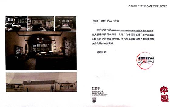 近日,“为中国而设计”第八届全国环境艺术设计大展暨学术论坛在广州美术学院落下帷幕。beat365官网美术学院教师降波指导的2014级环境设计专业学生刘通和2015级环境设计专业学生毕然的设计作品《传统的再造——宝鸡市翟家坡民俗养老院设计方案》入选本次大展,并获入会资格作品。