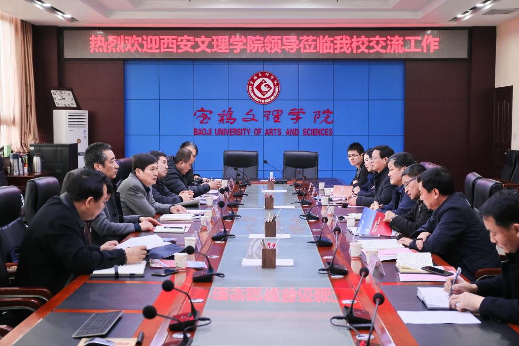 11月15日上午,西安文理学院校务委员曹鸿等一行来beat365官网调研交流工作。副校长王富平等会见了曹鸿一行,双方在新校区801会议室进行了座谈。座谈会由王富平主持。