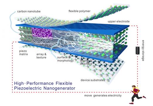压电纳米发电机在能量收集、压电传感、柔性电子器件和自供电电子系统、可穿戴设备等多个技术领域应用前景广阔。本研究分类总结了压电纳米发电机的工作原理和发展历史;对比了当前不同种类压电纳米发电机输出电压、输出电流以及能量密度;指出压电纳米发电机的性能已经提升了几个数量级,尤其是输出电压已经超过了100 V,但低的电流输出仍然是限制其应用的最主要因素;通过开发新型高性能压电基质材料、改变压电材料的表面形貌与界面结构、掺杂多壁碳纳米管与化学元素以及为复合薄膜构建异质外延界面等有效策略,可以提高压电纳米发电机的输出性能;预测出未来压电纳米发电机的发展趋势和应用前景,揭示压电纳米发电机会向着高效的性能输出、非凡的柔性和灵活性等方面发展。(科技处、化学化工学院 文、图/田梅娟)
