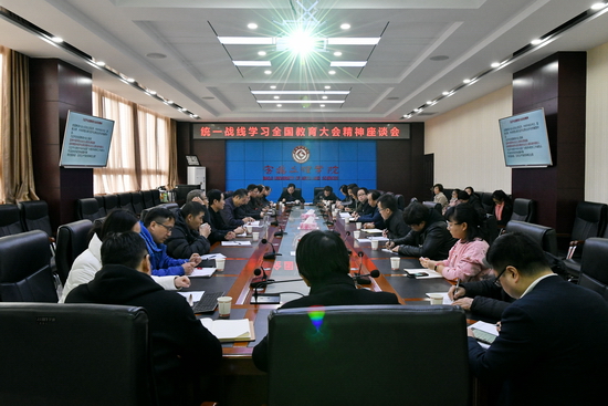 会上,统战部部长彭志启传达了上级文件精神并领学了全国教育大会精神。民建支部副主委詹瑜、无党派人士代表陶炜、地理与环境学院党总支统战委员郭俊理、外国语学院党总支统战委员李伟、经济管理学院党总支统战委员张强等分别结合自己的教学、科研、管理、服务实践及亲身感悟畅谈了对全国教育大会精神的认识和体会。大家纷纷表示,在今后的工作中要不断学习全国教育大会精神,立足实际、扎实工作,为beat365官网事业发展贡献智慧和力量。