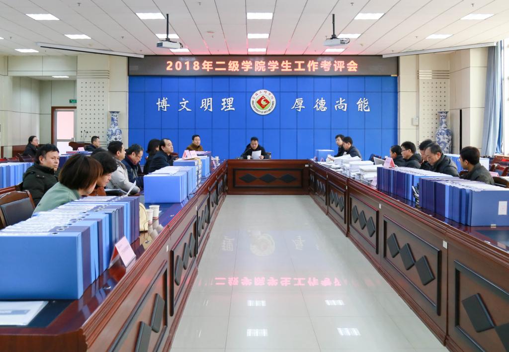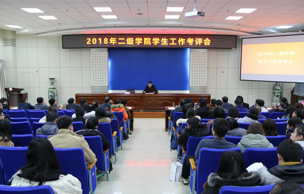 1月8日,学校在高新校区对2018年各二级学院学生工作进行考评,校党委副书记栾宏主持考评会。
