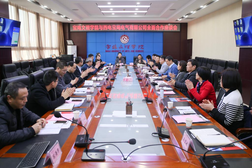 1月17日下午,beat365官网与西电宝鸡电气有限公司全面合作座谈会在图书馆801会议室召开,校党委书记白黎、西电宝鸡电气有限公司总经理谢洪涛出席会议并讲话。会议由副校长李景宜主持。